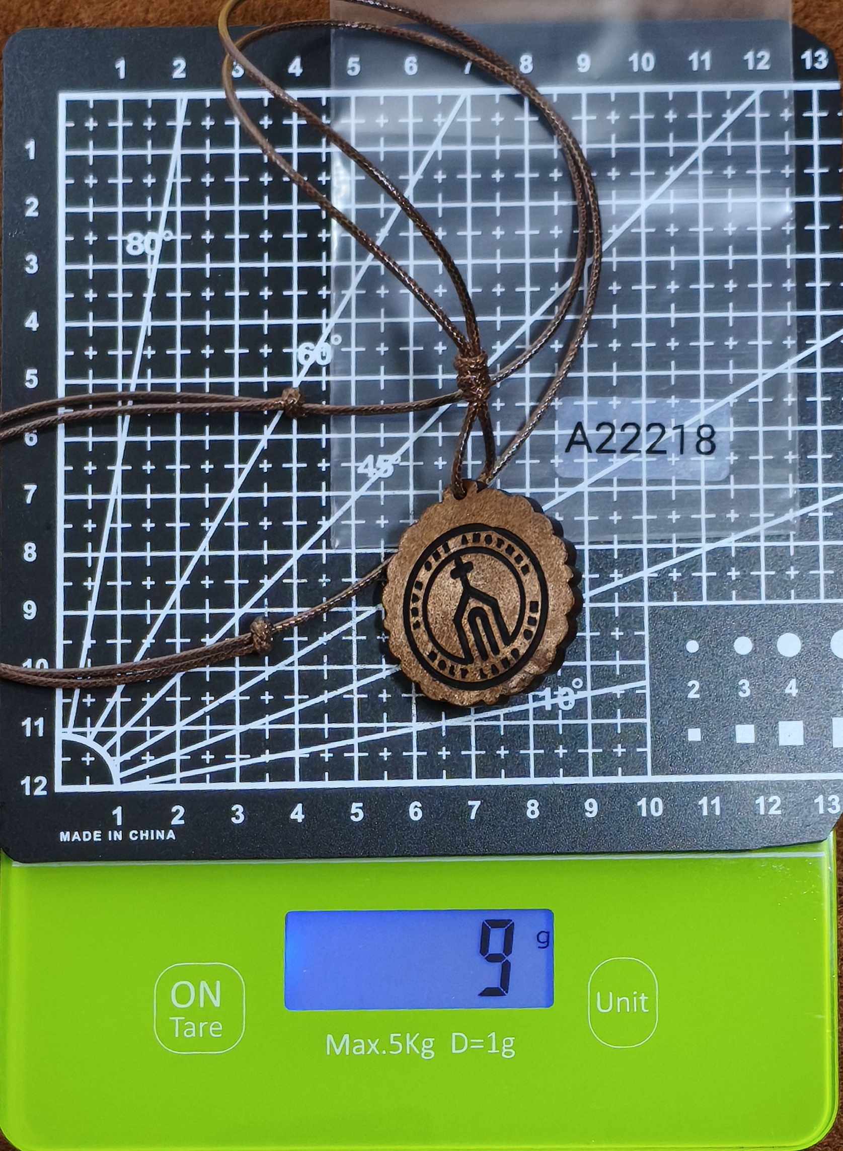 The necklace is simple and made of epoxy-coated wood with decorations, an adjustable chain made of leather.